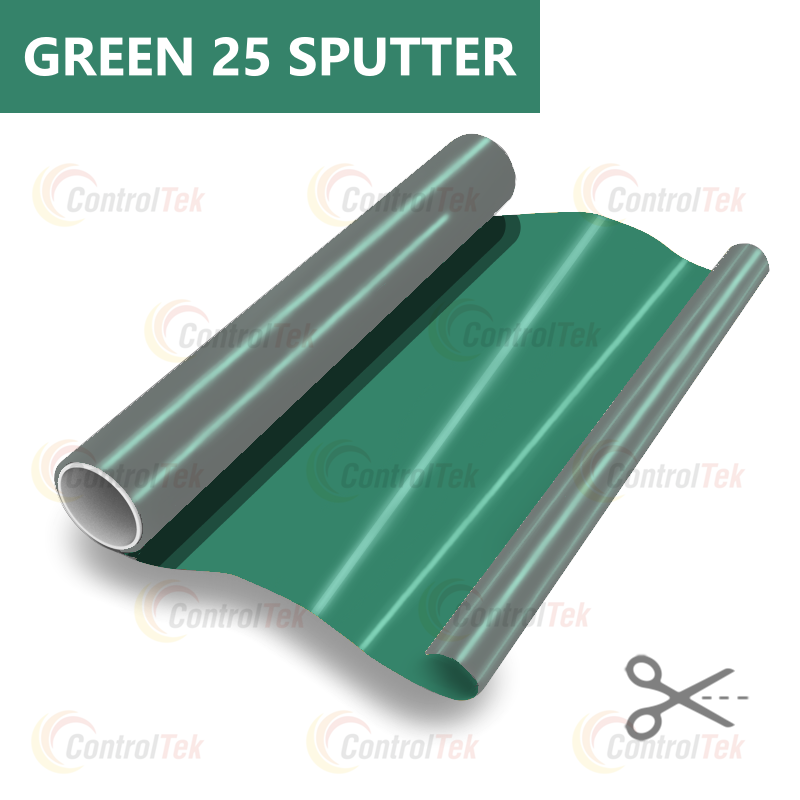Солнцезащитная спаттерная пленка ControlTek GREEN 25 SPUTTER - зеленая пленка с легким зеркальным эффектом и светопропускаемостью 25%.  Толщина 2 mil = 56 мкм. Спаттерная пленка ControlTek Характеризуется повышенной способностью удерживать тепловые лучи, она пропускает больше света в помещение при высоких показателях инфракрасного отражения.