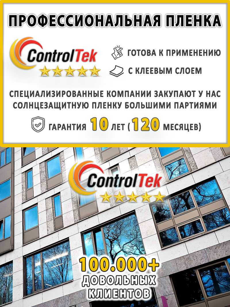 Бронировочная пленка ControlTek может использоваться для любых видов окон, стекол, мебели, поверхностей. Такую пленку часто устанавливают на столы и кухонные столешницы с гладкой поверхностью. Хорошо держит температуру и не деформируется при контакте с горячими тарелками или бокалами.