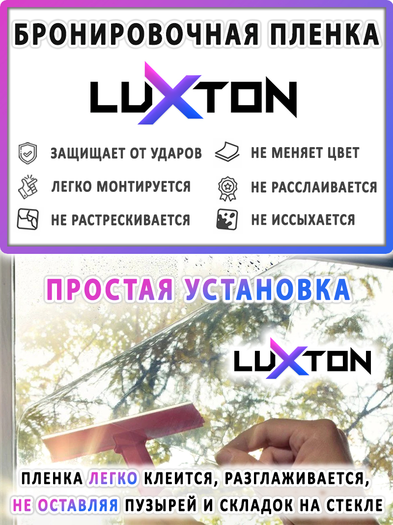 Бронировочная пленка LUXTON предназначена для защиты стекла и стеклянных изделия от механических повреждений. Защитная пленка придает стеклу противоосколочные свойства. Изготовлена из высокотехнологичного и качественного материала.