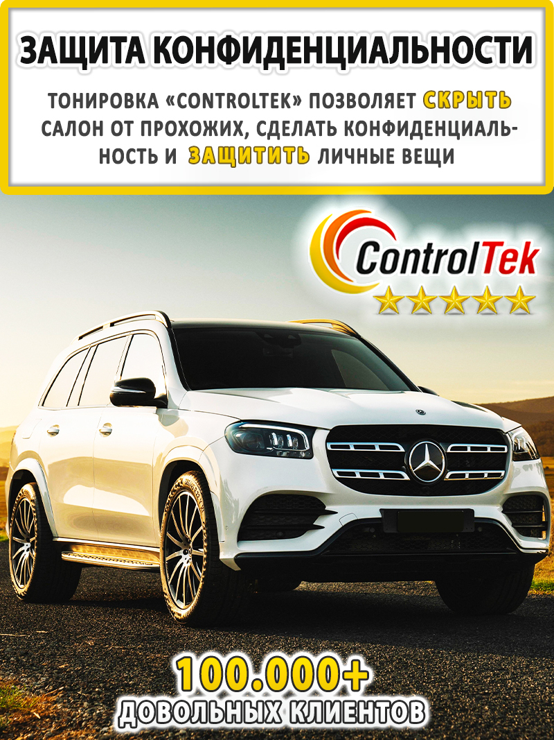Тонировочная пленка ControlTek позволяет скрыть салон автомобиля от прохожих, сделать конфиденциальность и защитить личные вещи от краж.