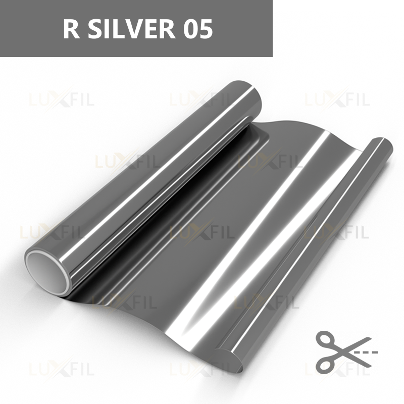 Пленка солнцезащитная для окон, пленка зеркальная для окон LUXFIL R SILVER 05 - серебряная пленка с зеркальным эффектом. Светопропускаемость 8%. Толщина 2 mil = 56 мкм. Характеризуется повышенной способностью удерживать солнечные и тепловые лучи. Почти как зеркало.