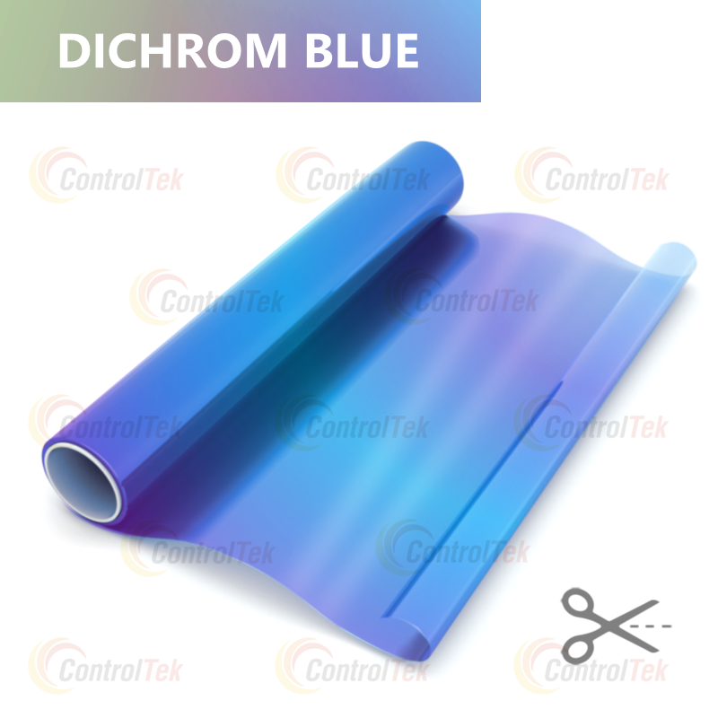 Солнцезащитная пленка ControlTek DICHROM BLUE - голубая пленка не зеркальная со светопропускаемостью 62%. Толщина 2 mil = 56 мкм. Пленка ControlTek Характеризуется повышенной способностью удерживать солнечные и тепловые лучи.