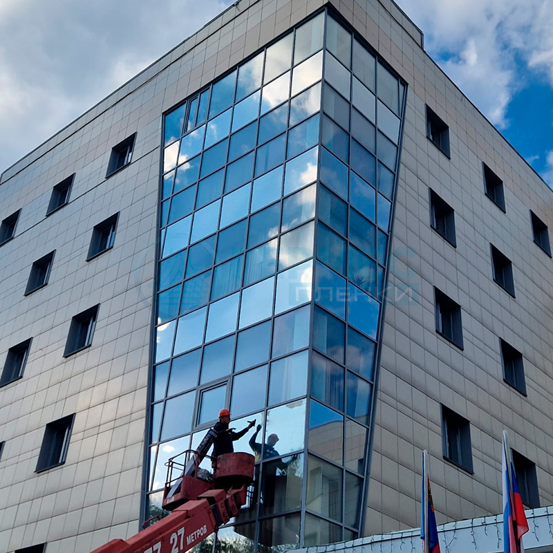 Благодаря металлизированному напылению, срок службы зеркальной пленки более 10 лет, она блокирует вибрации на стеклах и создает эффект шумоизоляции. Зеркальная тонировка является прекрасным декоративным решением, как внутри помещения, так и снаружи.